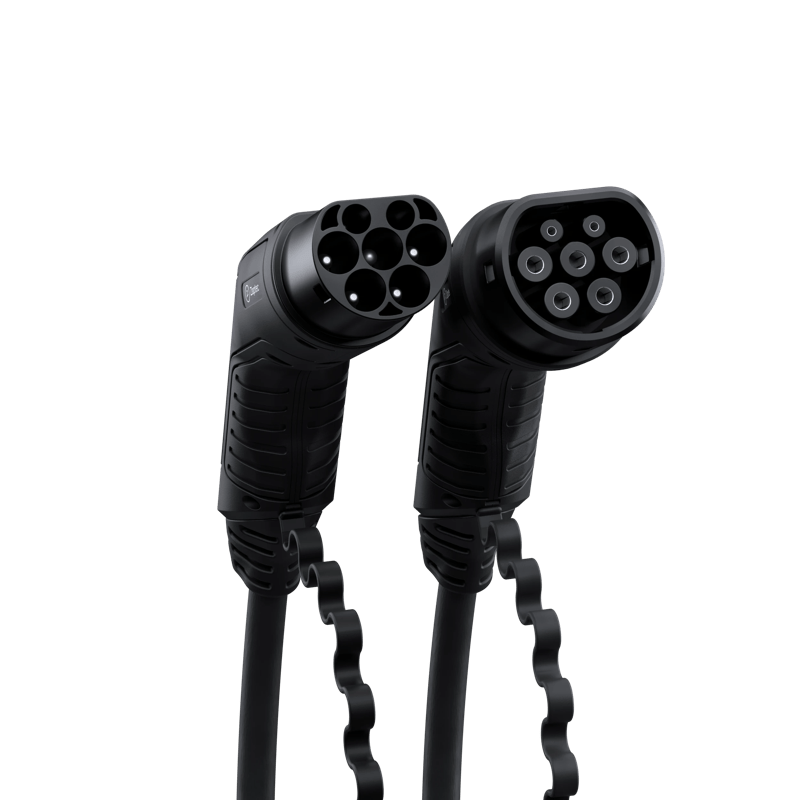 Säker och hållbar laddningskabel designad för att stå emot hårda väderförhållanden. Den har gummilock på laddningspluggen för att skydda mot vatten och damm när kabeln inte används.